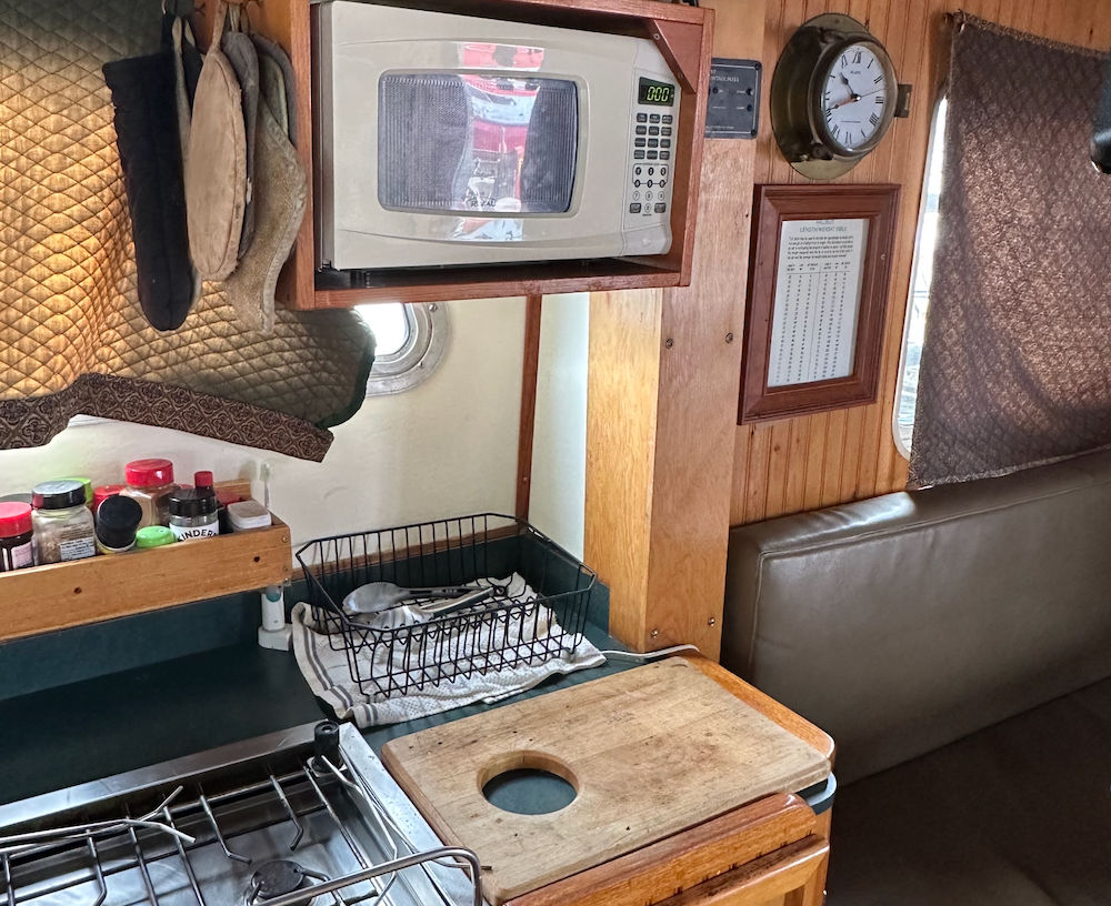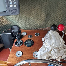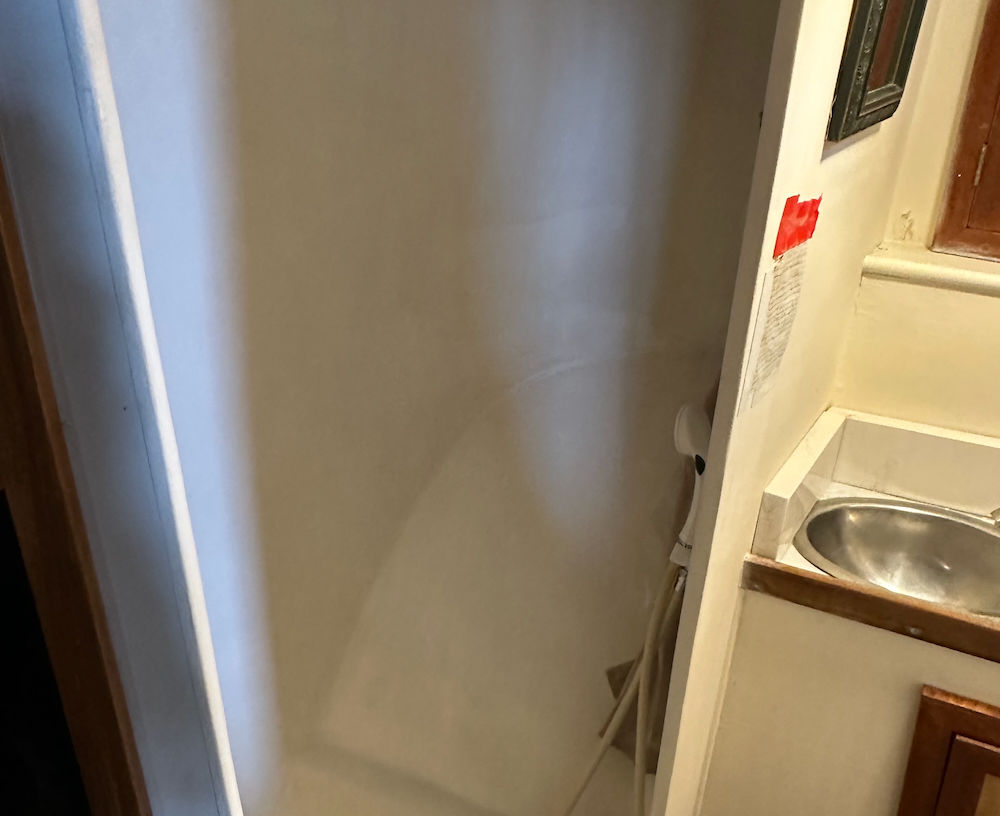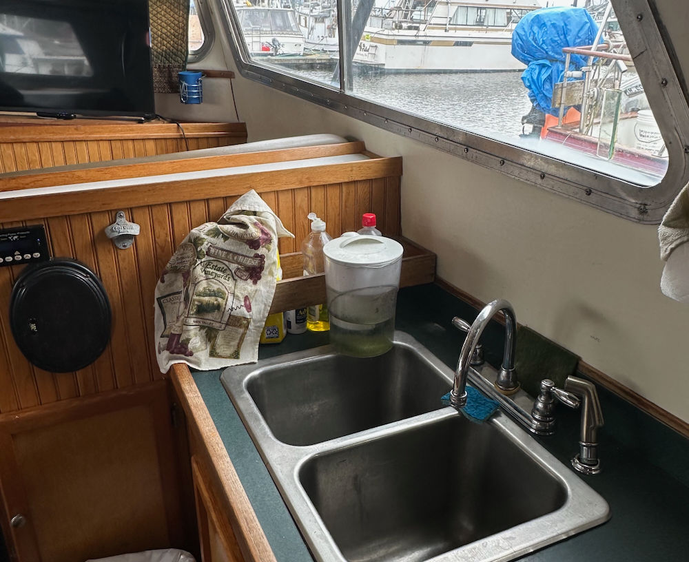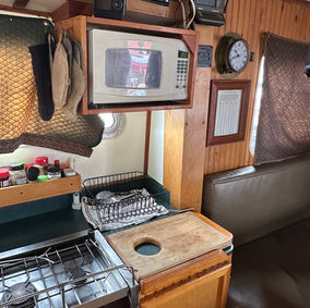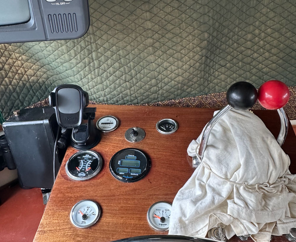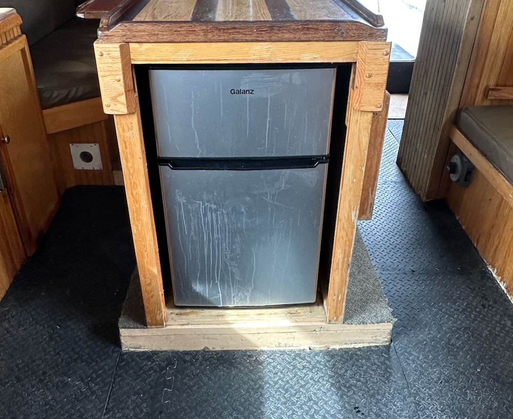 Nice interior accommodations that sleep 4 in 4 single berths, electric marine head with salt water flush, independent shower enclosure, and a full galley with Force 10 LPG (2) burner stove-oven, microwave, and Danby refrigerator.• Fuel efficient Single 8V-71 Detroit 310 HP diesel power