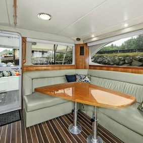 REDUCED TO $299,000. With her sleek design and classic high end yacht interior, this Riviera fly bridge sport fisher is both a head turner and a serious fishing machine. The Glacier Girl boasts twin Cummins power, three station controls, bow thruster, 2 staterooms and a large fly bridge with 360 views of your surroundings. All in all, Glacier Girl is in fantastic condition and fully loaded! With her upgraded Cummins power, 3 station Twin Disc Commander electronic controls and gorgeous interior, she should be considered if you are in the market for a clean well equipped sport fisher. If you are interested in learning more or want to schedule a viewing, don't hesitate to contact us!